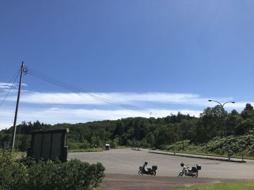 北見峠の大きな駐車場にカブ2台。ホントに人がこないようで休憩施設やトイレも閉鎖中。 北見峠を降りてくると(多分)旧北見峠と思われる分岐があるので入ってみる。 途中で分岐があり直線側を進んでみると線路で通行止め。 もう一方の道はおそらく林道かな…