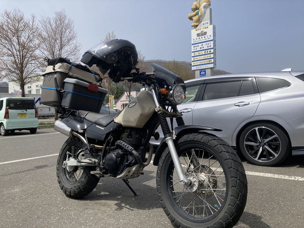今回の登板はTW200E。国道274号を東へ進んで、道の駅 夕張メロードで一休み。つけたばかりのロッドホルダーも大丈夫そう。